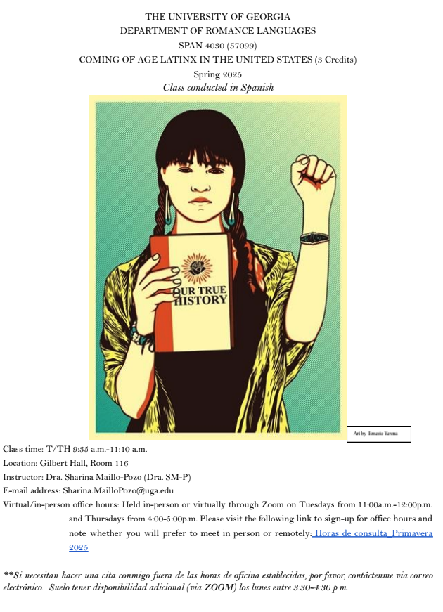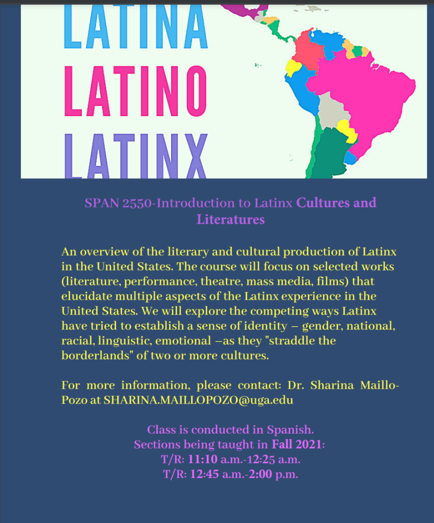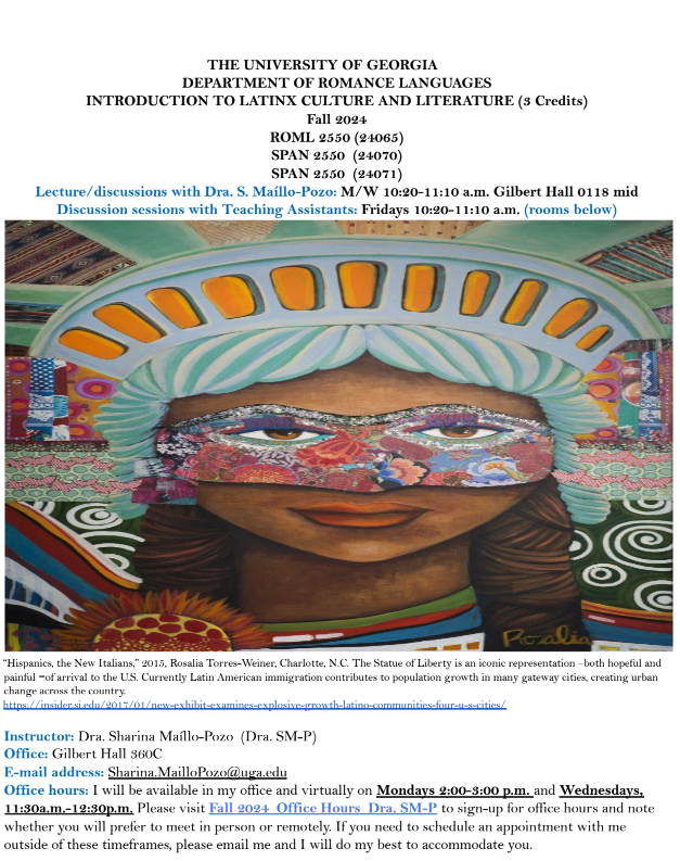- Introduction to Latinx Studies (Undergraduate, fall 2018-fall 2021; fall 2022; fall 2023; fall 2024 [class of 75 students; three Teaching Assistants in training)